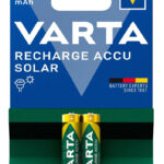 Επαναφορτιζόμενες μπαταρίες λιθίου της Varta με τεχνολογία Ni-MH, ιδανικές για χρήση σε ηλεκτρονικές συσκευές που φορτίζουν μέσω ηλιακής ενέργειας.
