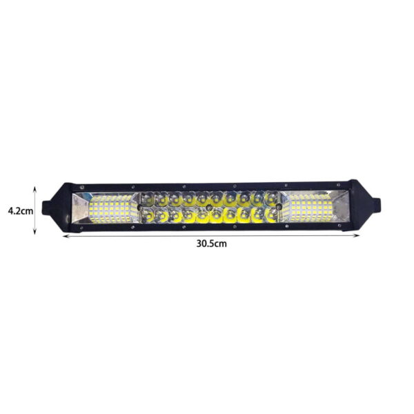 Αδιάβροχη μπάρα – προβολέας CREE LED για αγροτικά, τρακτέρ, φορτηγά ή σκάφη με ψυχρό φως, για εξαιρετικό φωτισμό στο δρόμο! Διαθέτει στο κέντρο LED με ειδικά κάτωπτρα για μακρινό φωτισμό (SPOT) και επιπλέον LED σε κάθε πλευρά με επίσης ειδικά διαμορφωμένα κάτωπτρα για κοντινό διάχυτο φωτισμό(FLOOD)